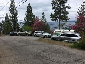 Now the white van came in parked in different neighbors shared parking then moved back t 205. Next the green Subaru photoed above (parking on weeds and mic places) is now encroaching and parking in the shared spot between myself and two other neighbors.